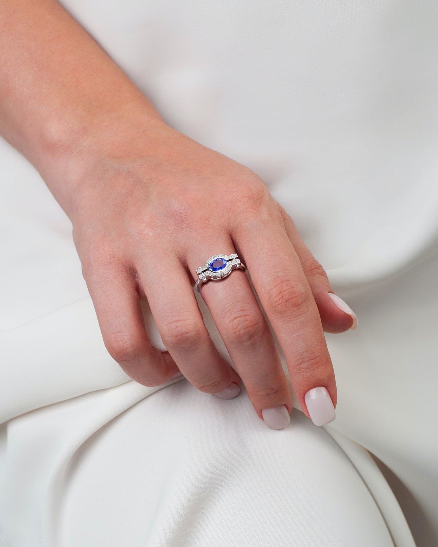 Fashion your own 'ring' of power with this Build A Blue Sapphire 14K Gold With Pave Diamond Ring! This 3g 14K white gold beauty is the perfect blend of industrial chic and luxurious sparkle. Wear it and show the world who's boss!