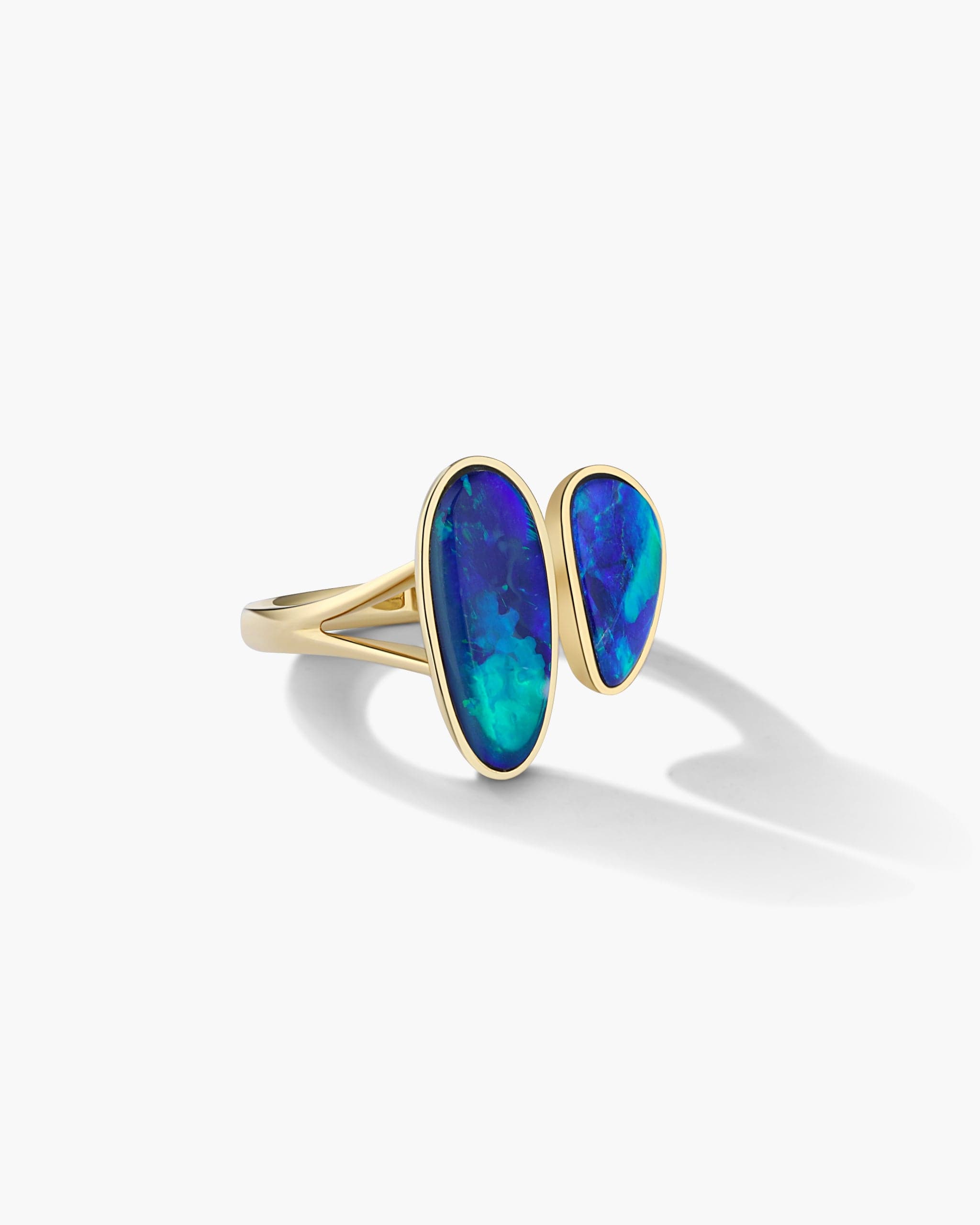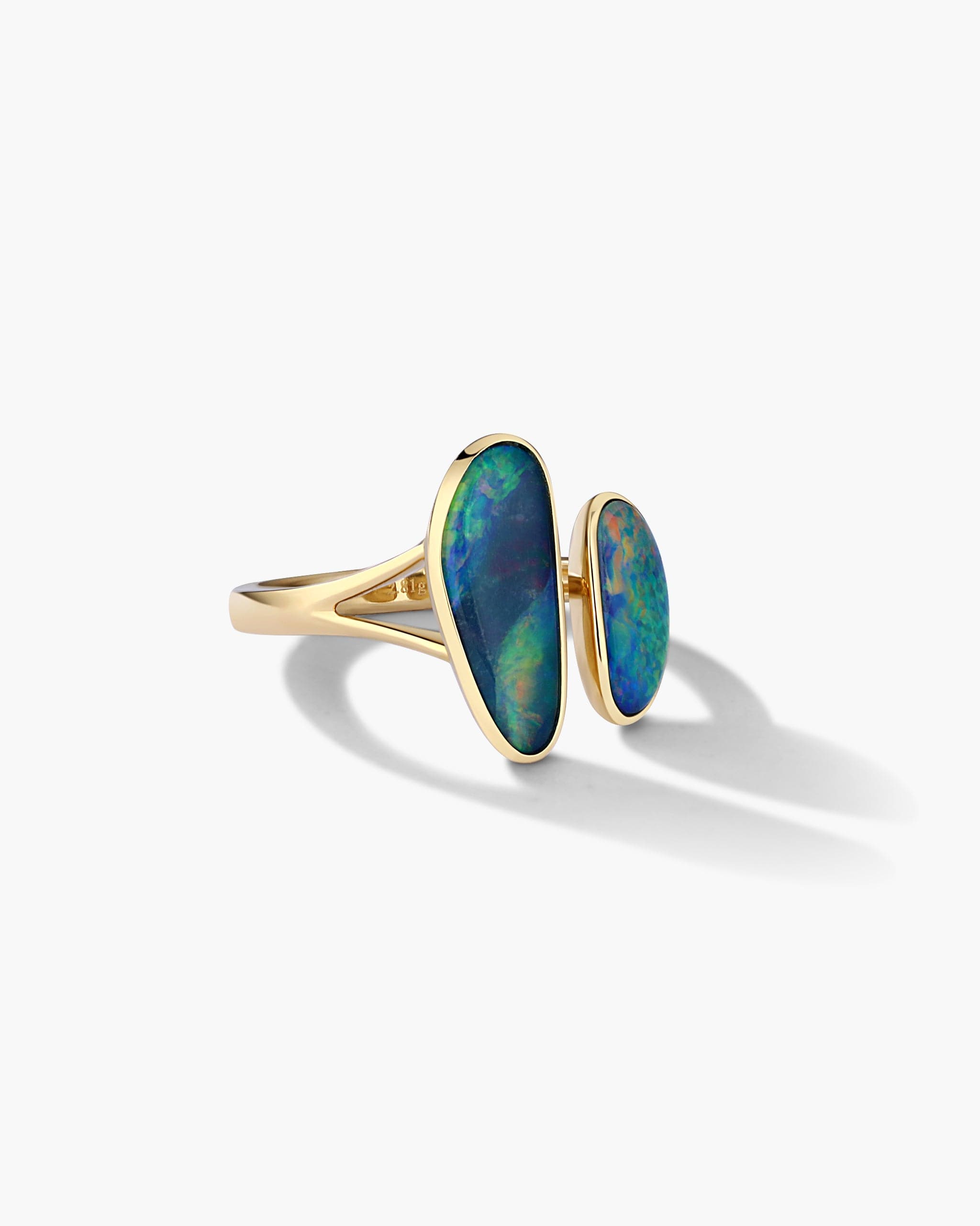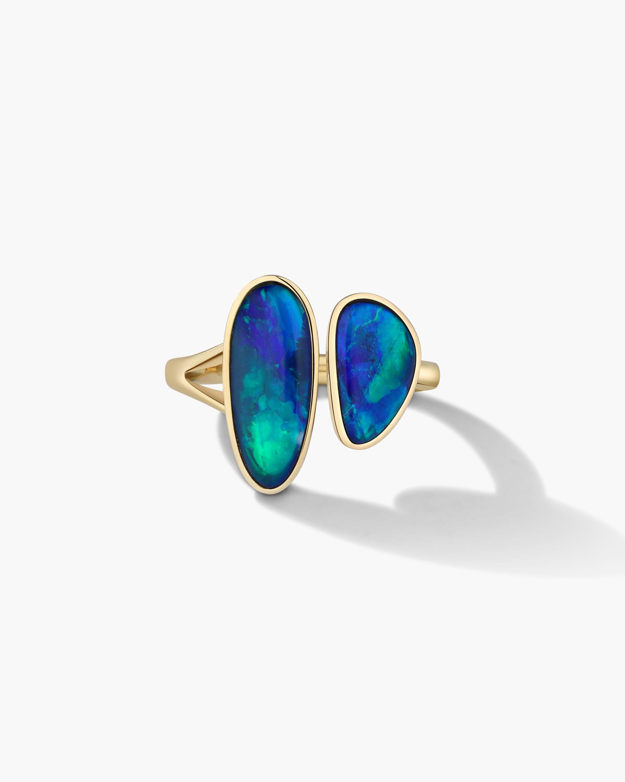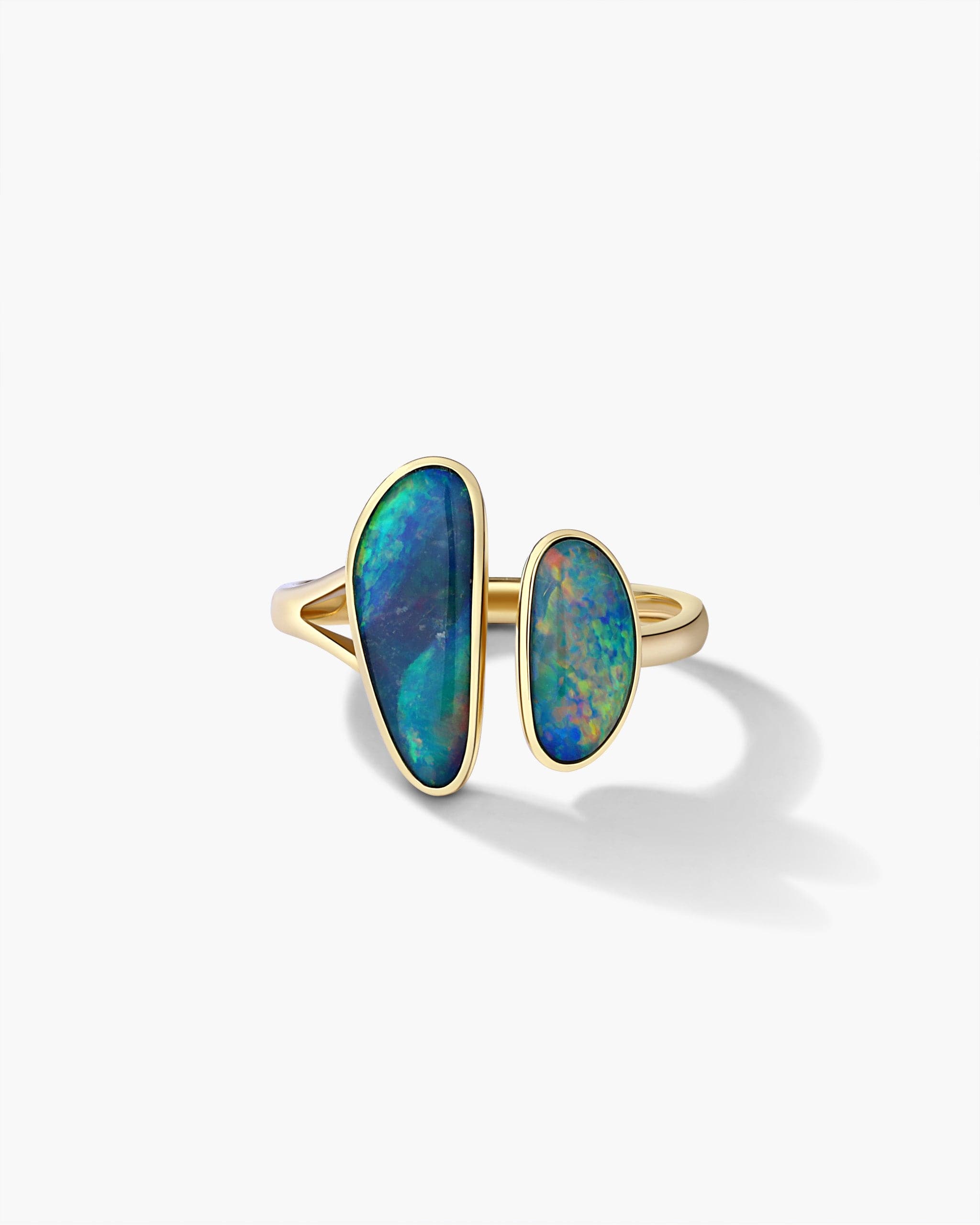 Oh-la-la! Immerse yourself in luxury with our gorgeous Opal Ocean Ring. Crafted from 14K gold and featuring a stunning Australian Black Opal with a beautiful flow of blue, green, and peacock colors, you'll be looking sea-rious.