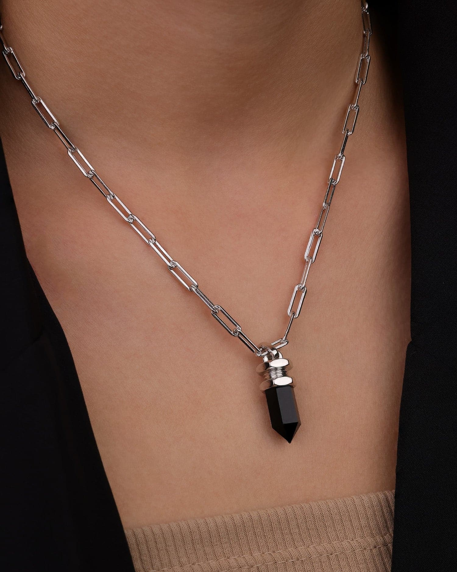 This stylish Metal Black Agate Necklace is inspired by a screw design for a creative and unique look. Its premium quality metal isfor a sophisticated and luxurious finish.