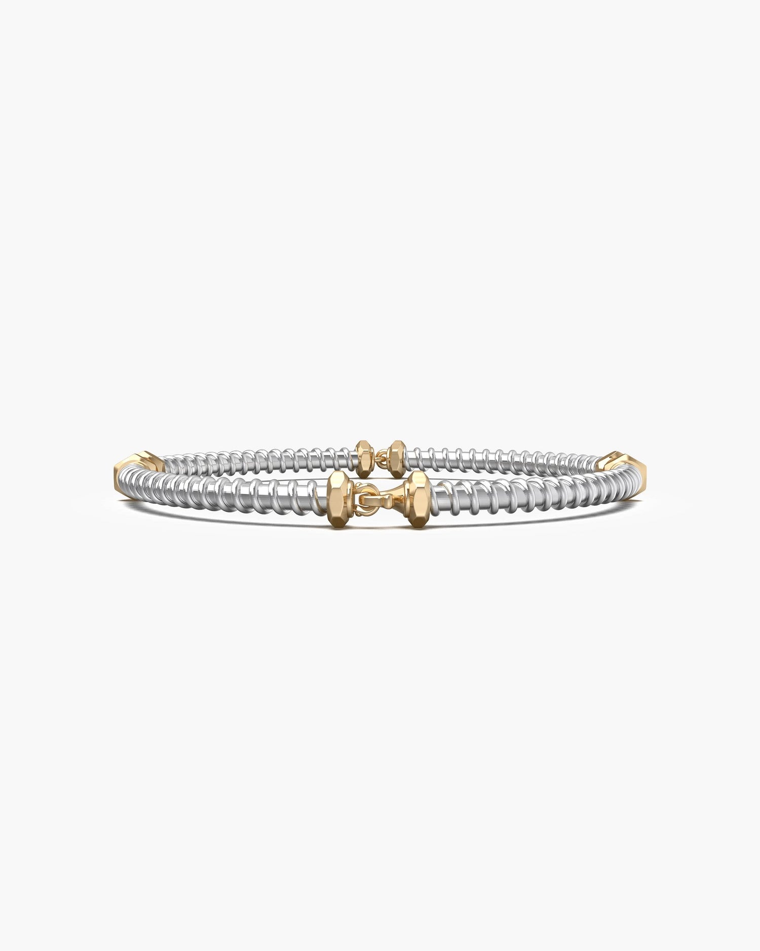 Inspired by the Op Art movement, the design is a combination of Link and Screwed series. The rings are connected in sections to create innovative visual effects. Simple fit, perfect for stacking with any bracelet.