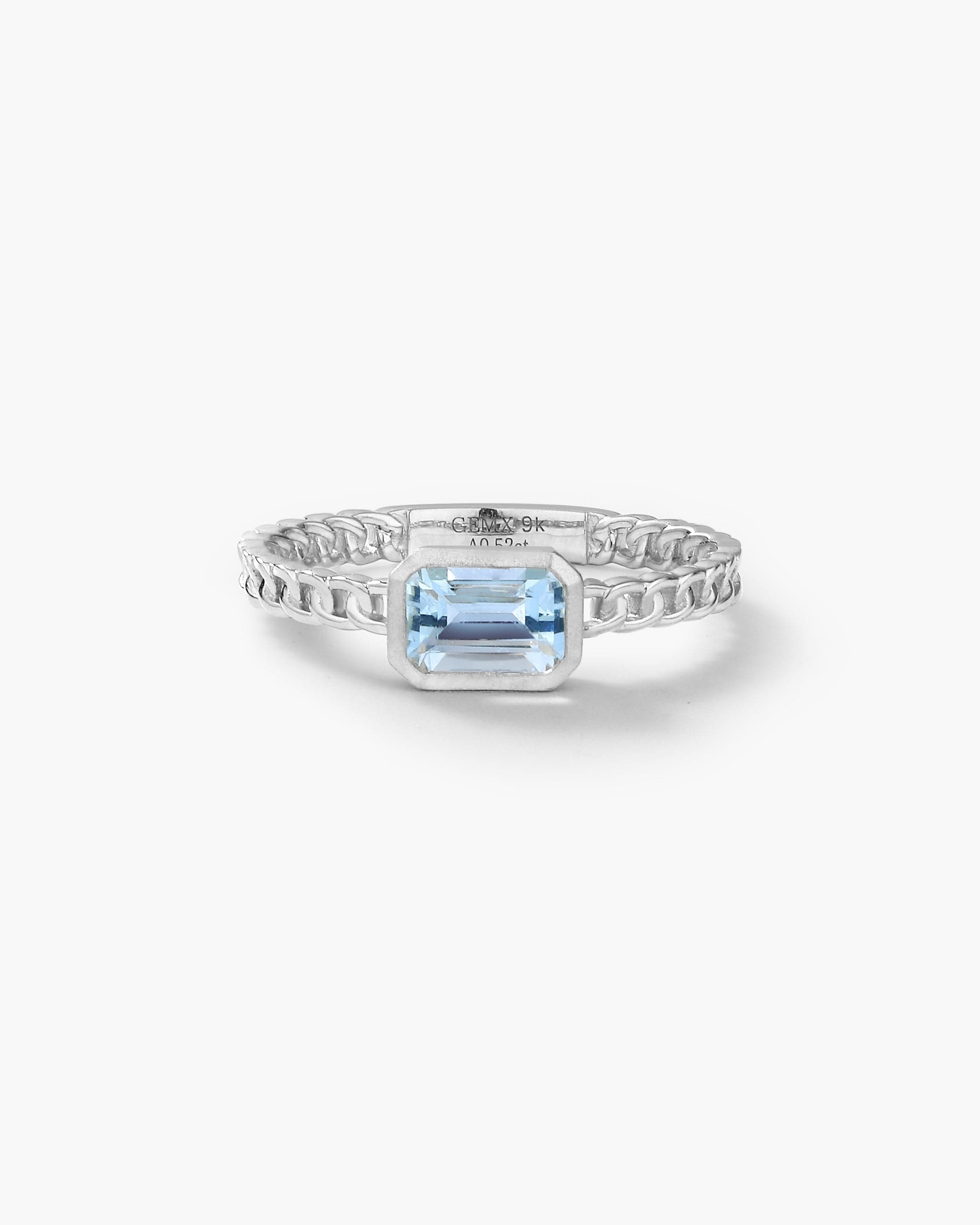 Inspired by the current popular street culture, the shape is magnificent, and the chains are regularly interlocking. The color of aquamarine is like the shallow sea of a resort, fresh and pleasant, and symbol of love and peace.