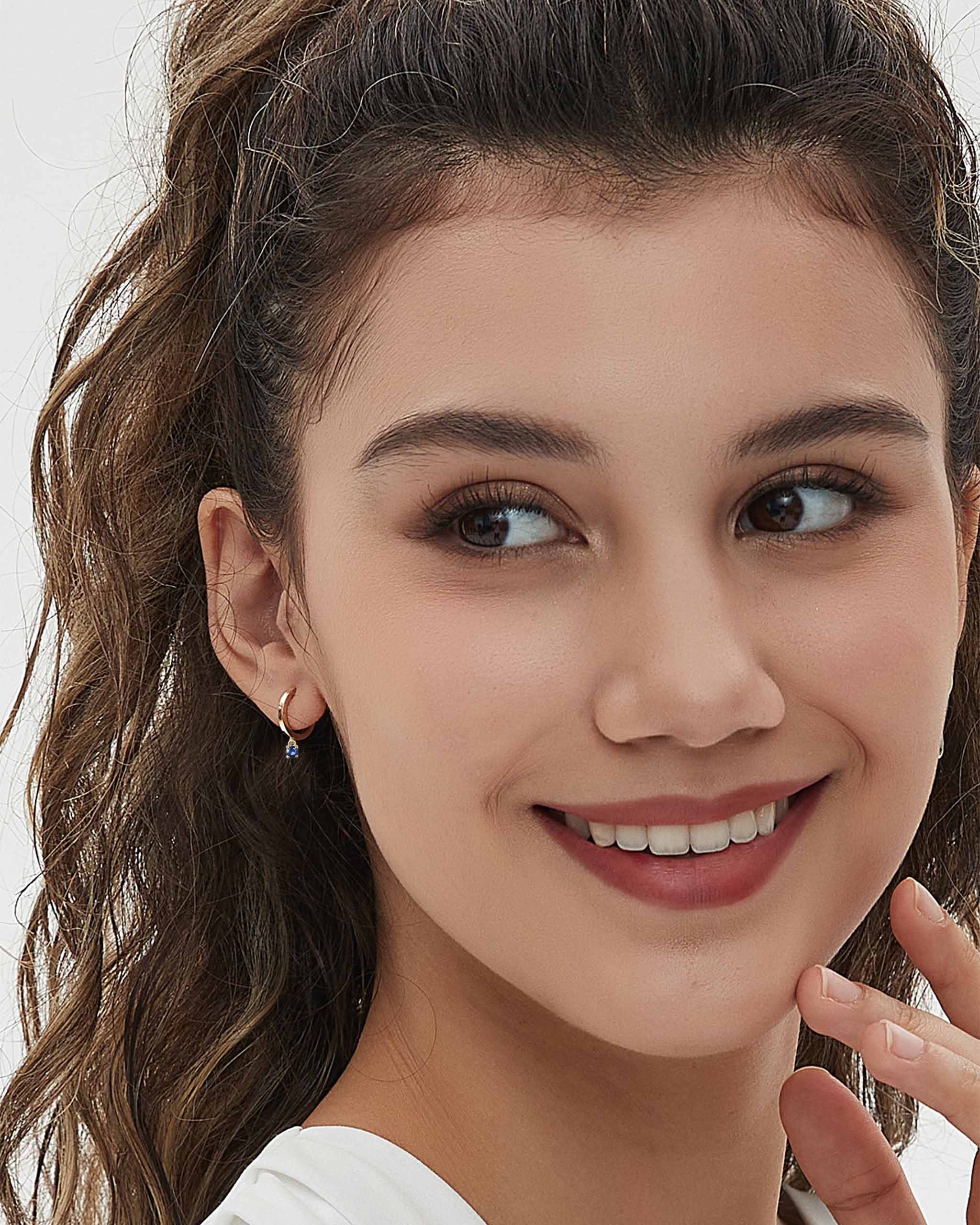 Simple Blue Sapphire With 14K Gold Dangle Earrings