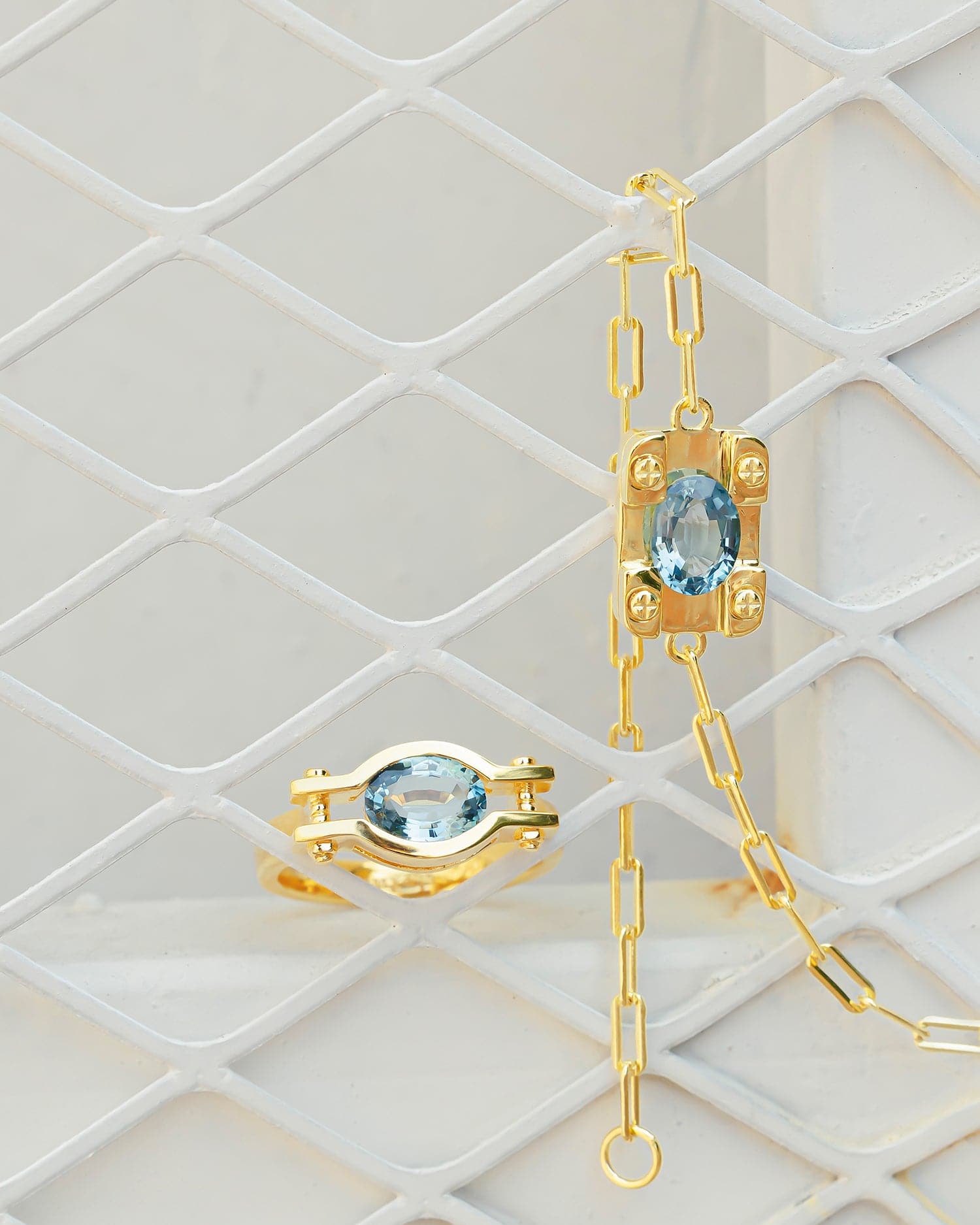 This is one piece of jewelry you won't find anywhere else! Our Build A Aquamarine Necklace is crafted with an innovative blend of industrial style and luxury, featuring a breath taking Aquamarine. Delight in this unique piece of jewelry and feel the luxury of modern-day luxury!