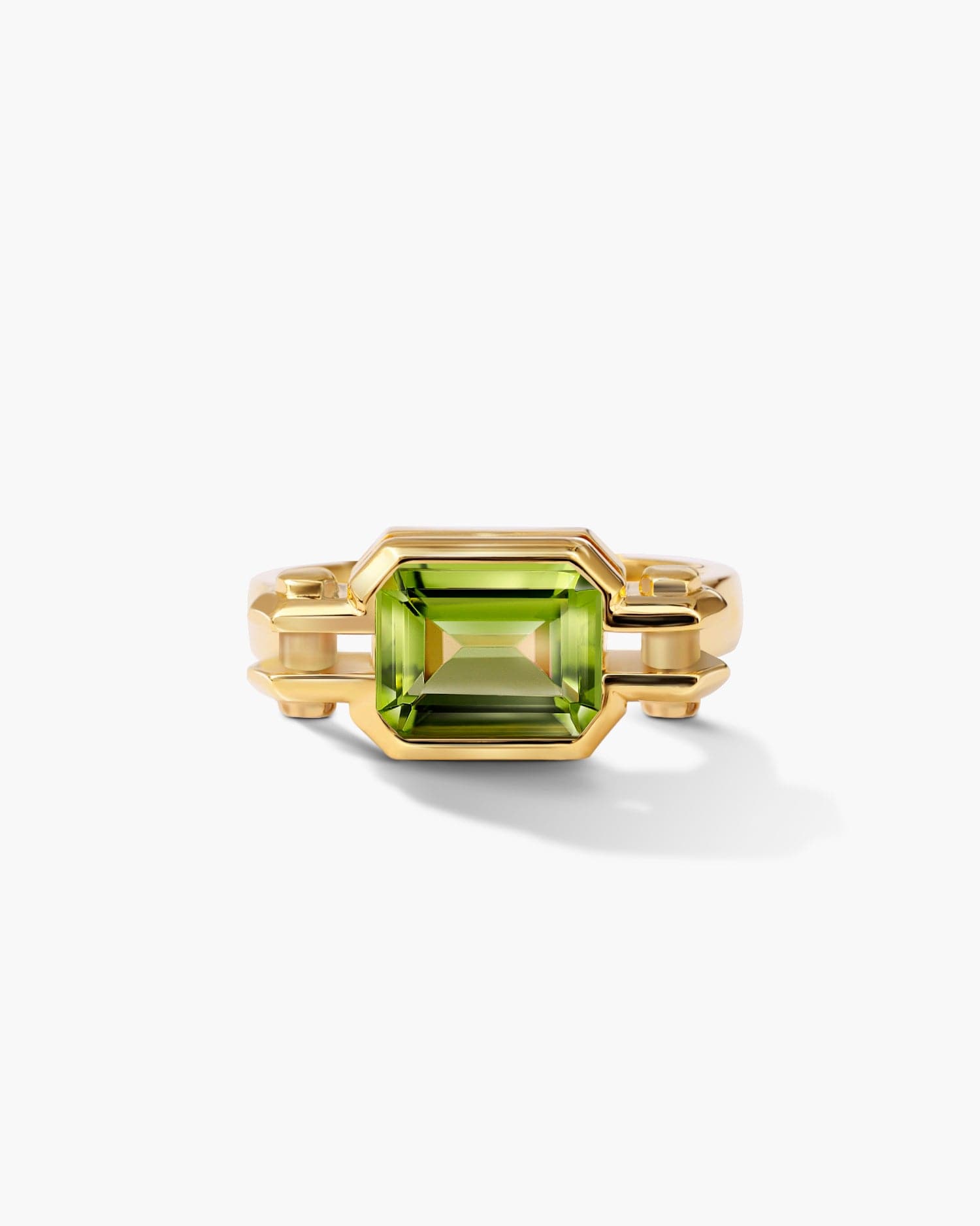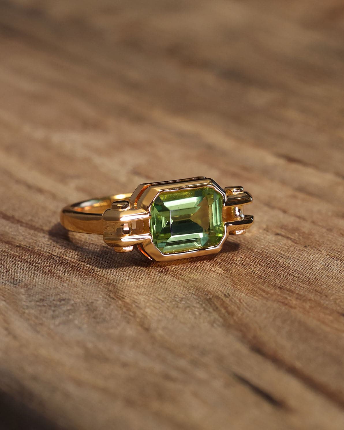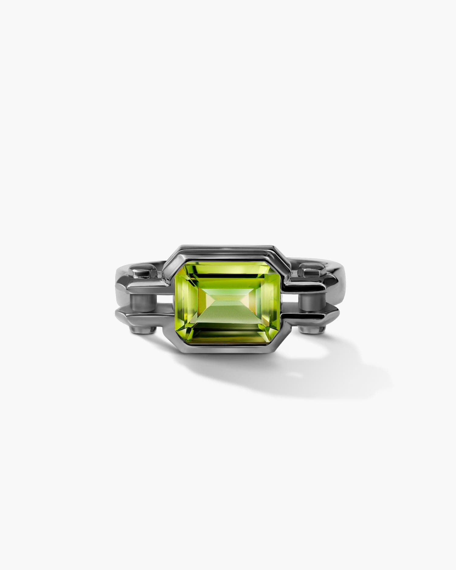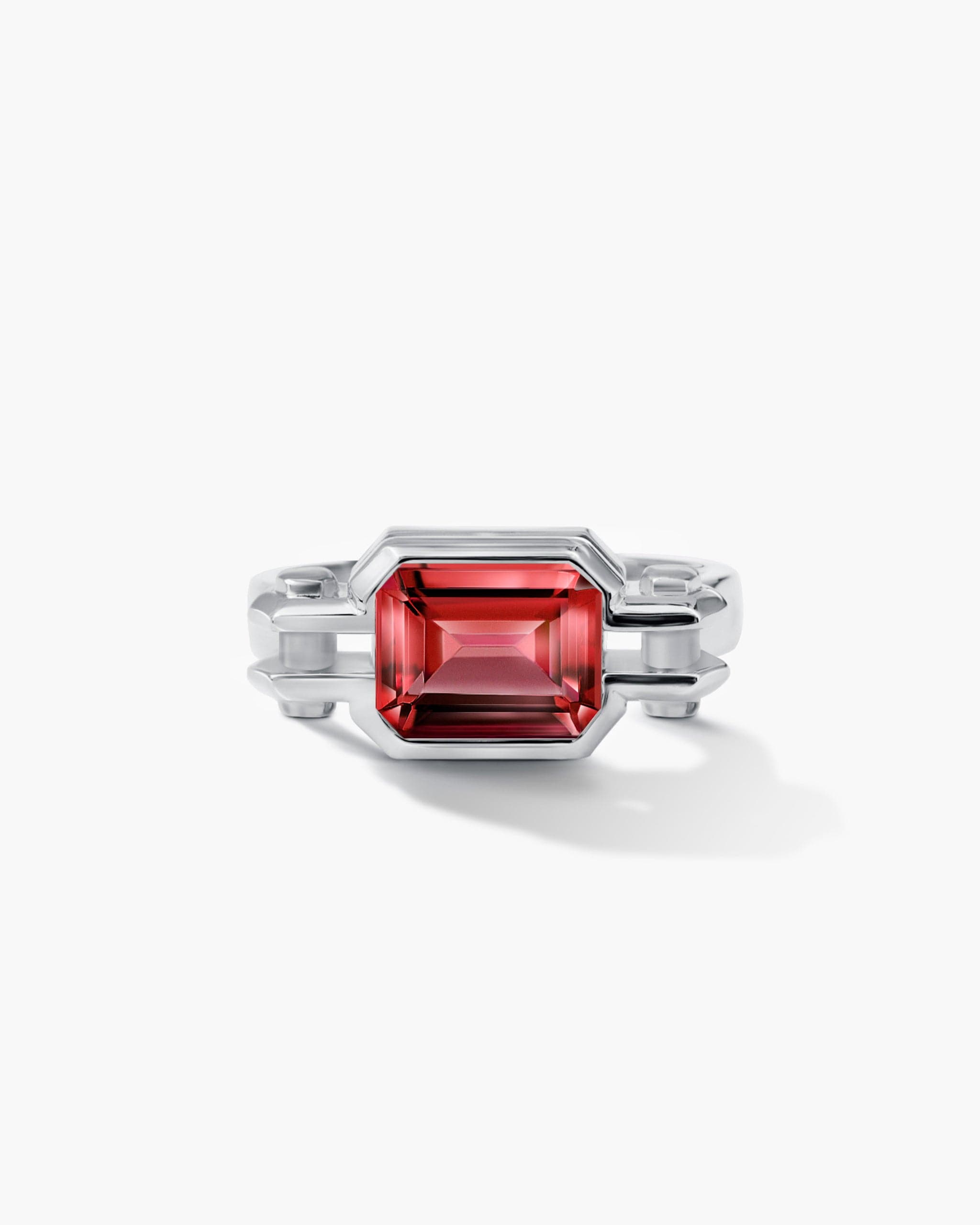 From the Build Collection, this 925 silver ring showcases two emerald-cut topaz stones on an open band, merging architectural precision with minimalist elegance.