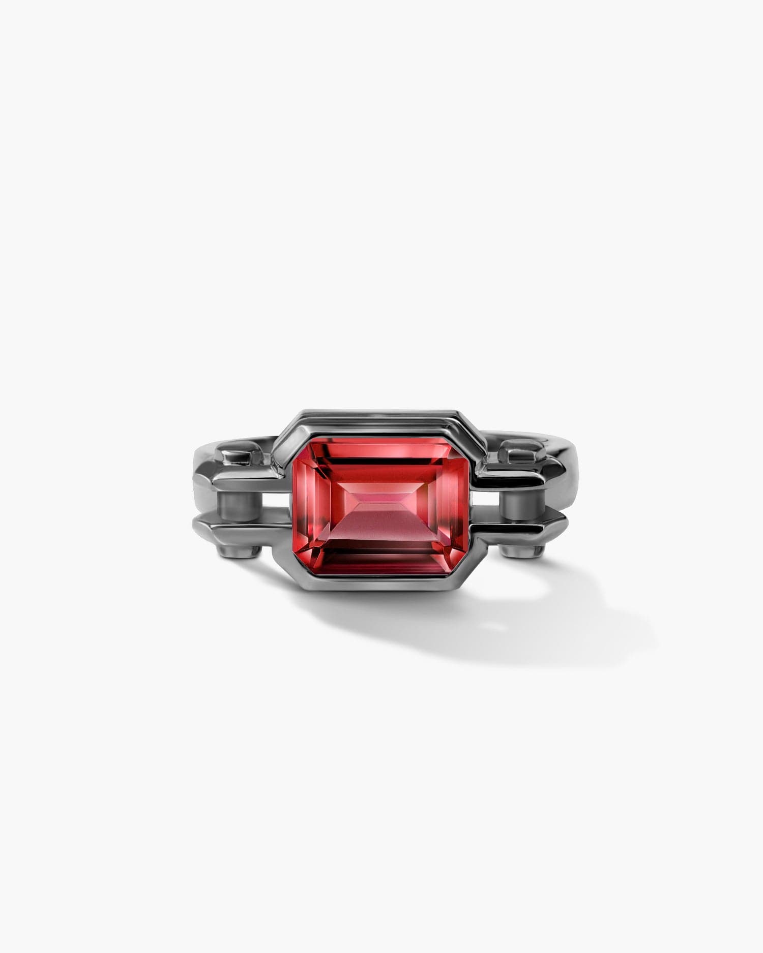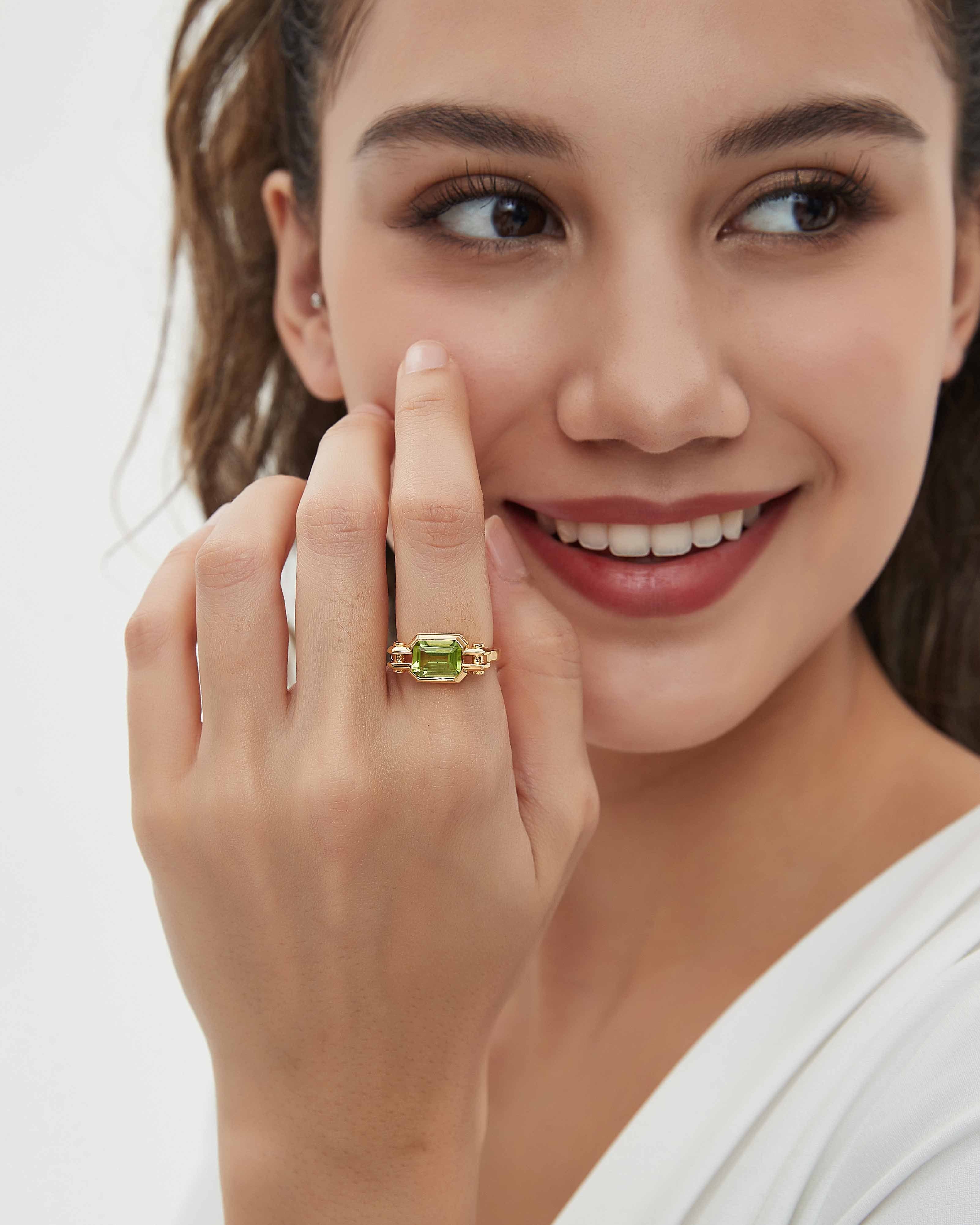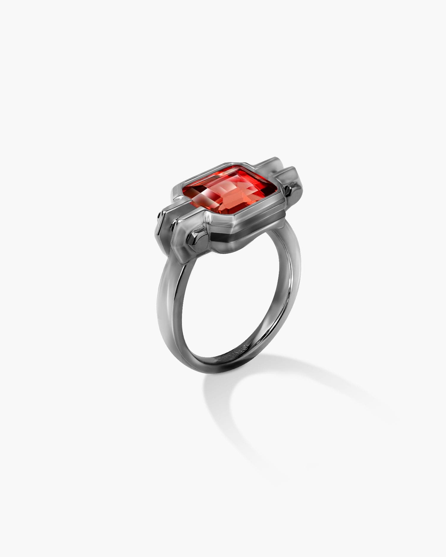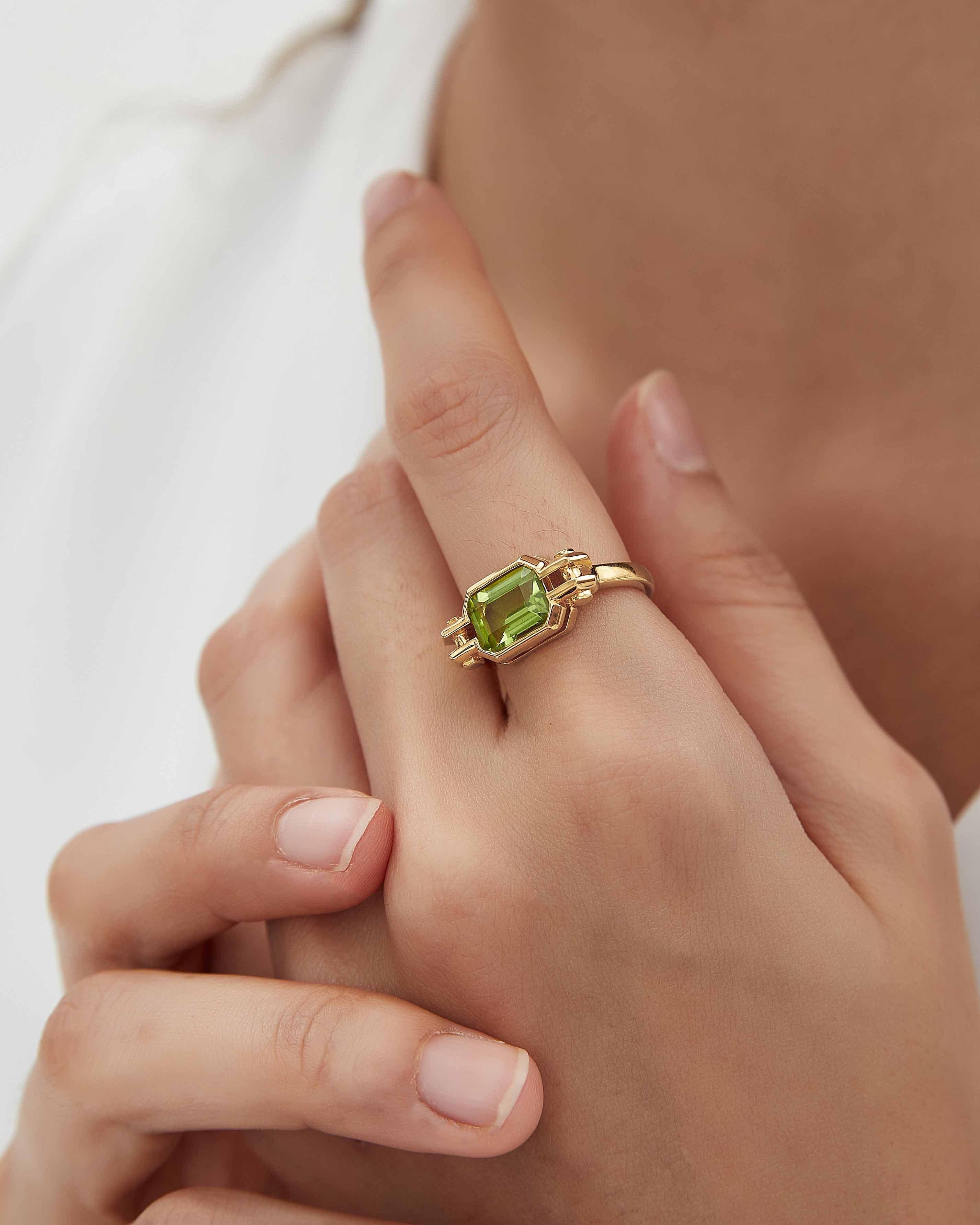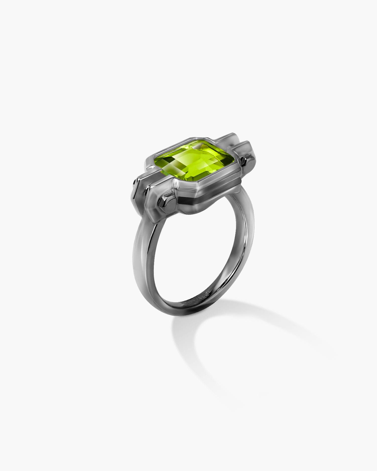 From the Build Collection, this 925 silver ring showcases two emerald-cut topaz stones on an open band, merging architectural precision with minimalist elegance.