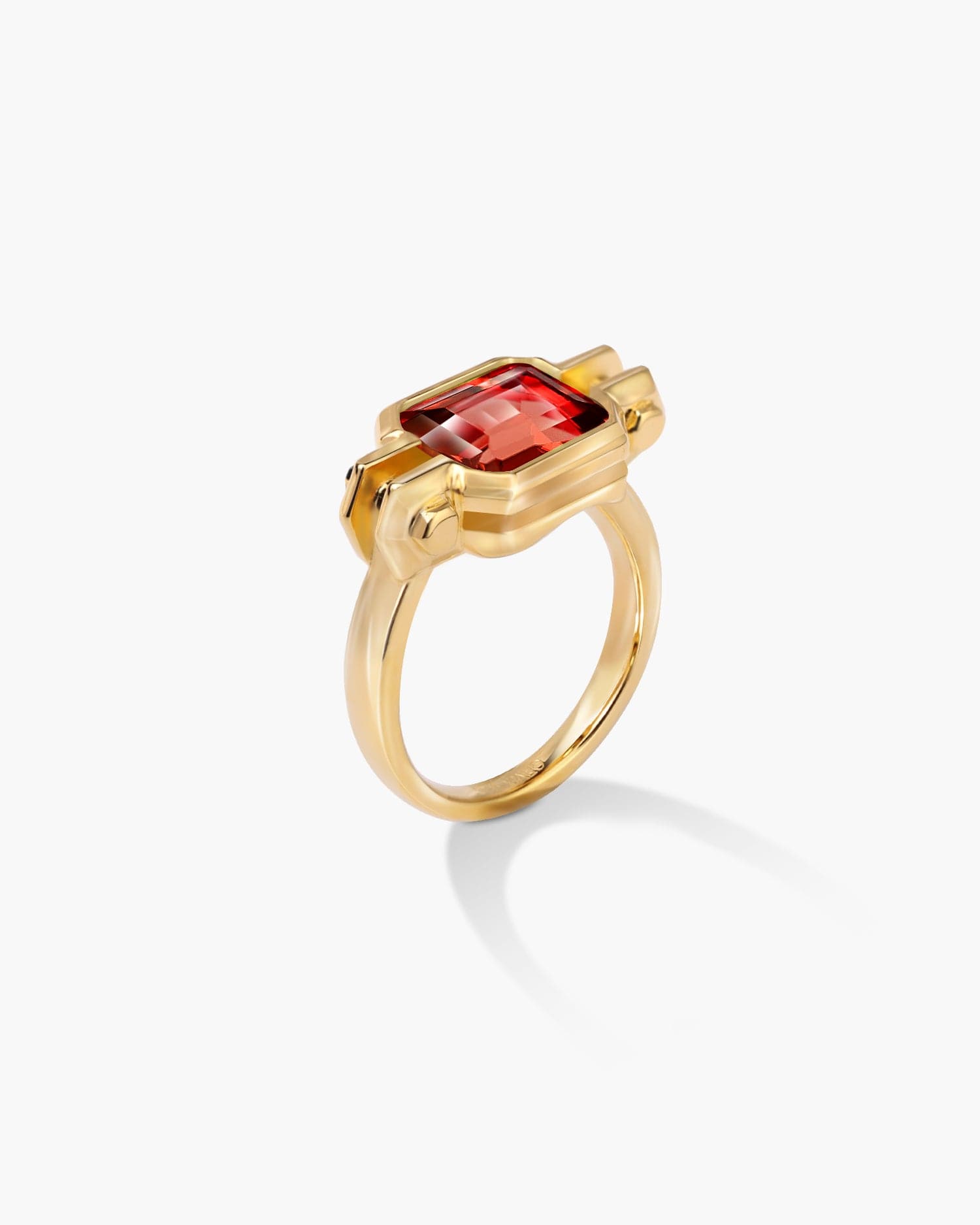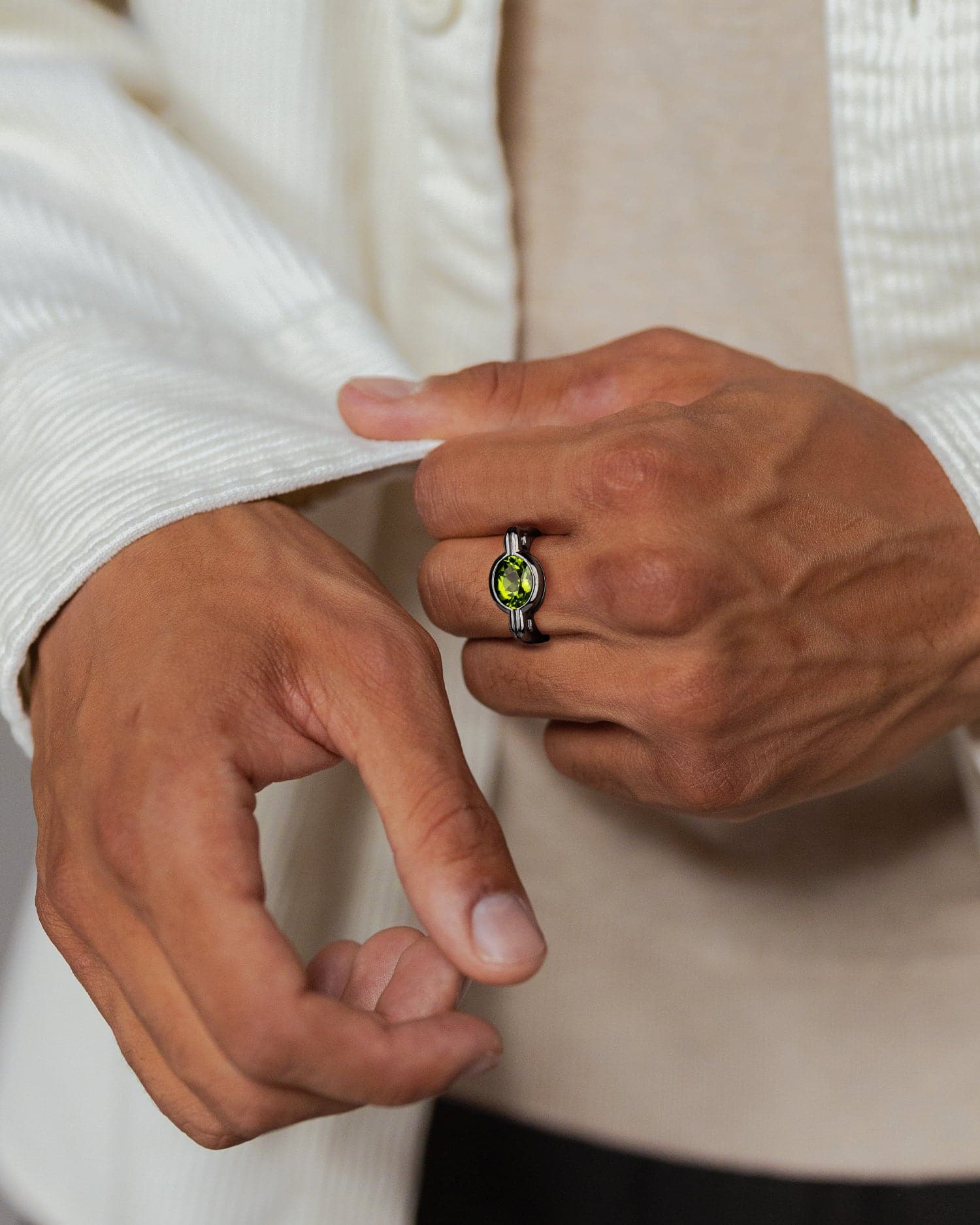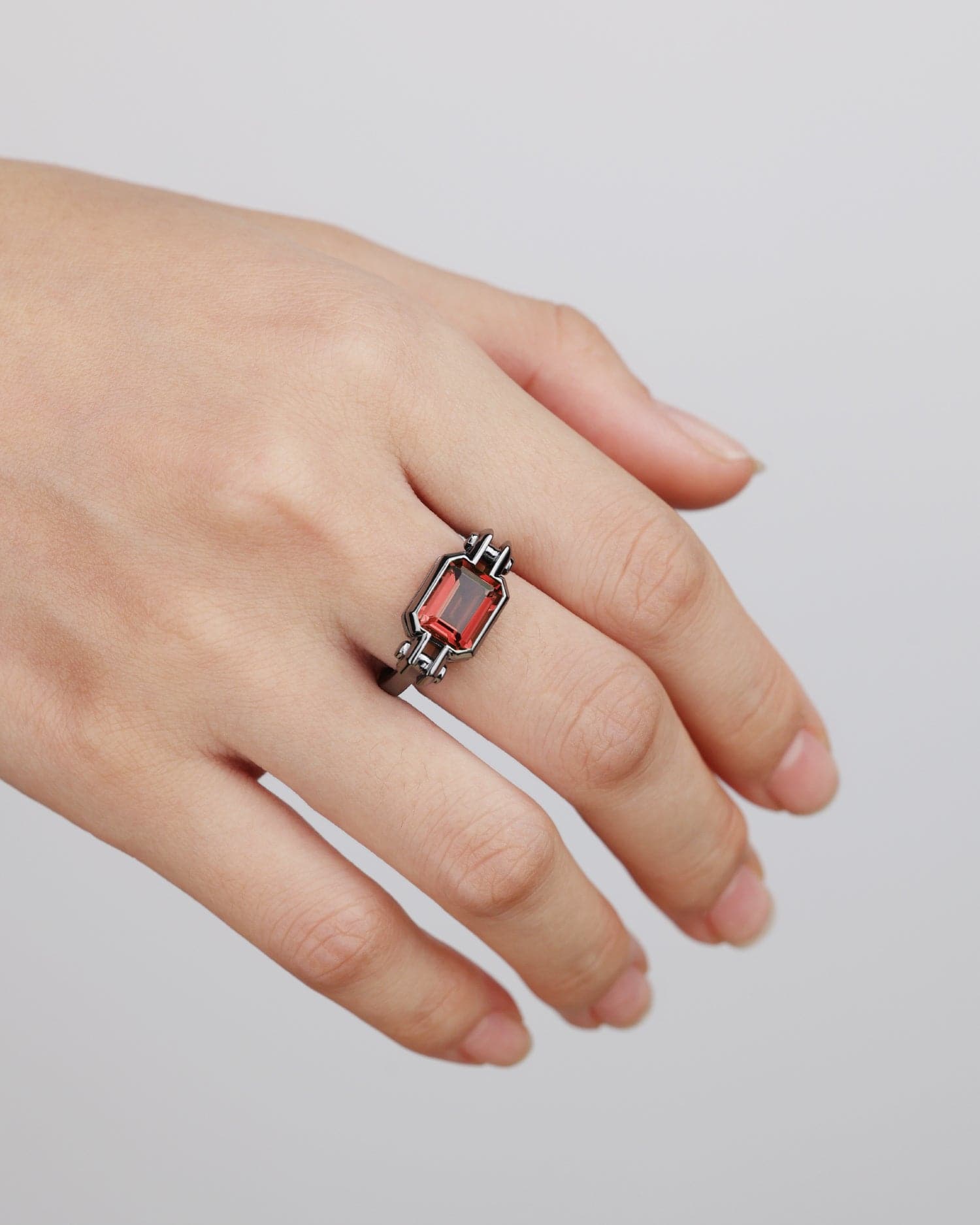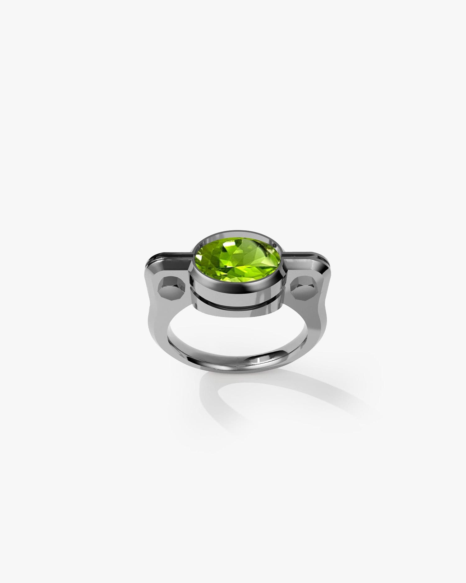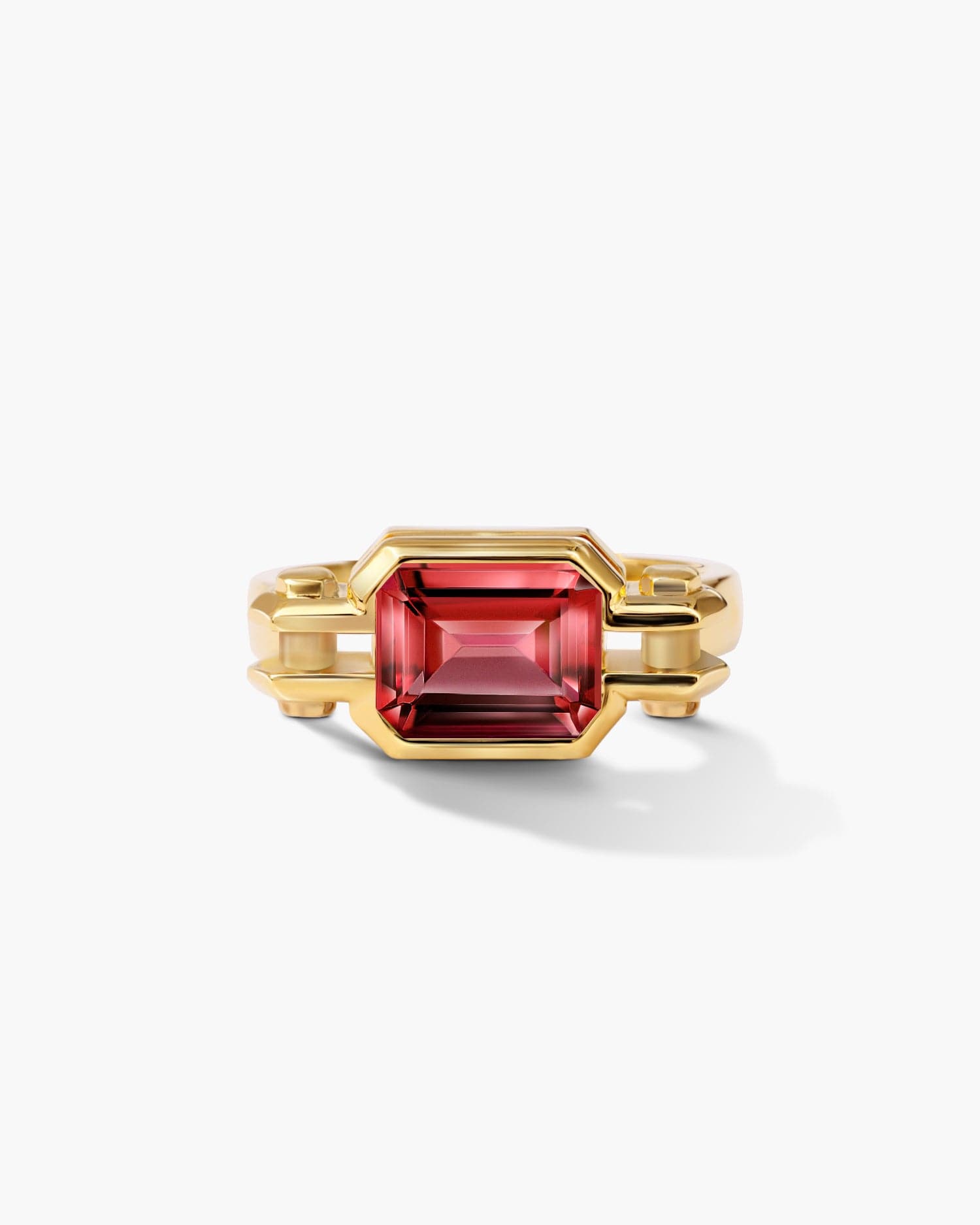 From the Build Collection, this 925 silver ring showcases two emerald-cut topaz stones on an open band, merging architectural precision with minimalist elegance.