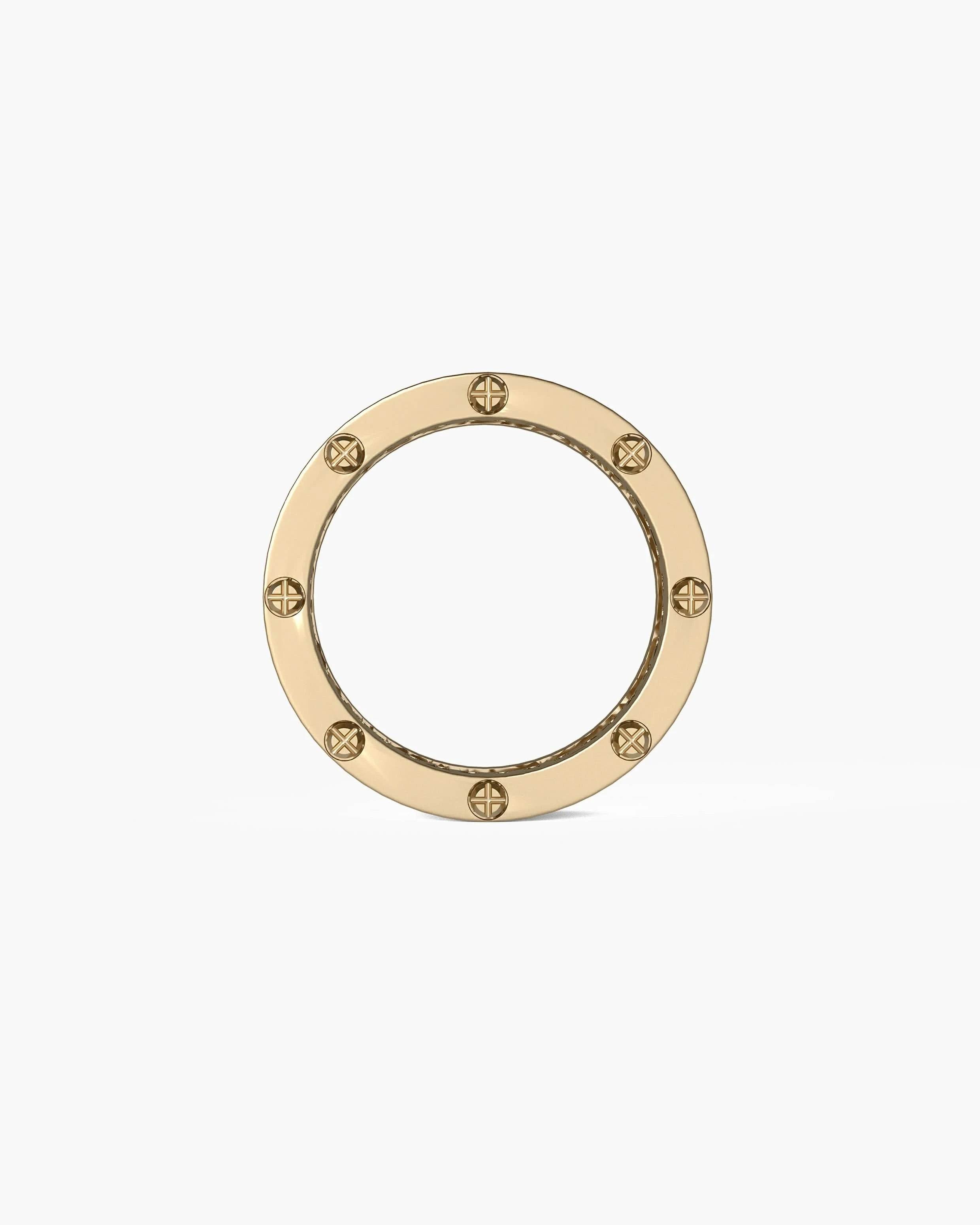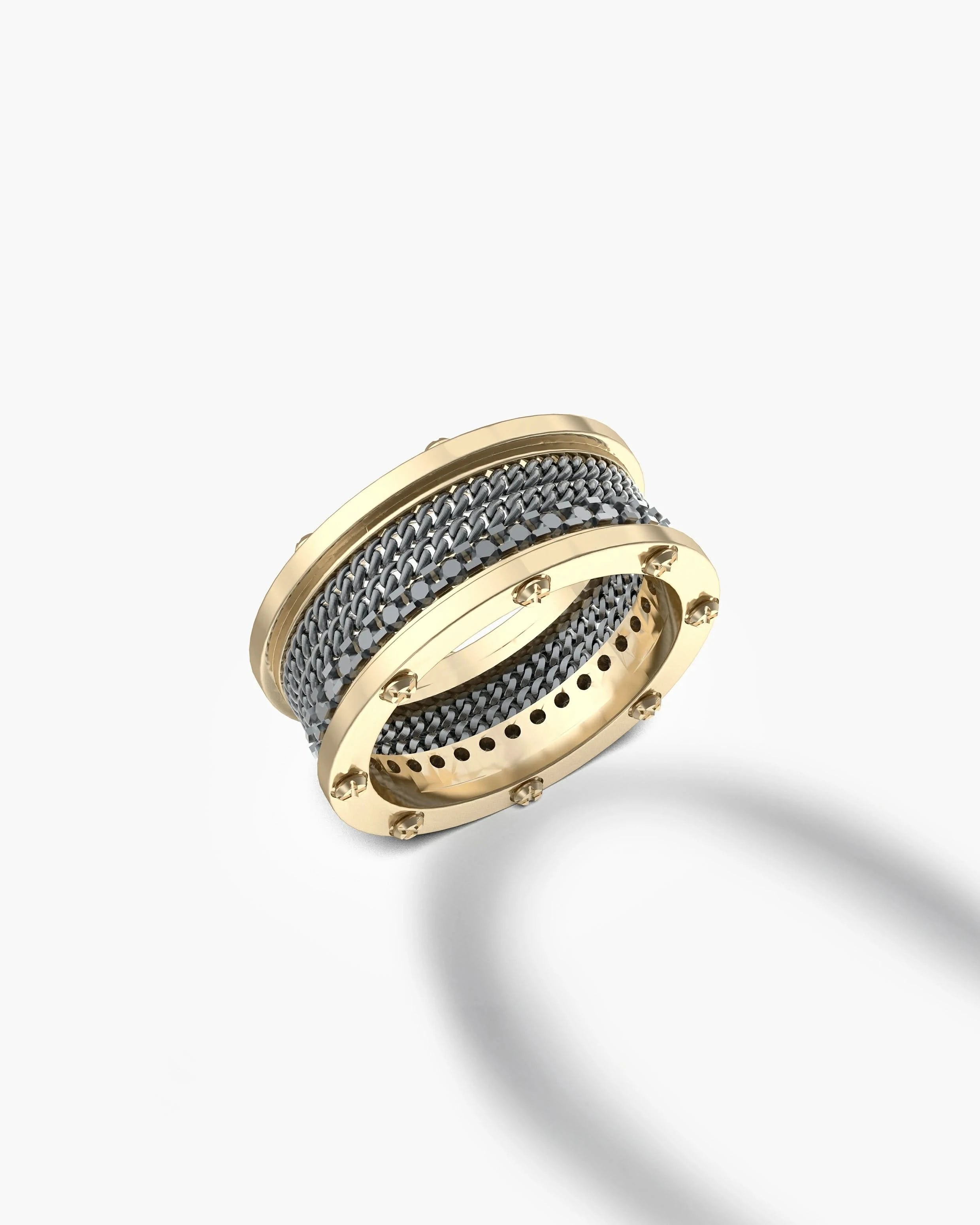 Forged with industrial mysticism, this architectural ring channels protective energy through its interlocking chainmail design. 36 obsidian-black spinels form a metaphysical armor ring (0.7ct total), scientifically proven to absorb negative energies while the precision-set screws create an energy vortex. Every rivet and stone placement aligns with sacred geometry principles for modern alchemists.
