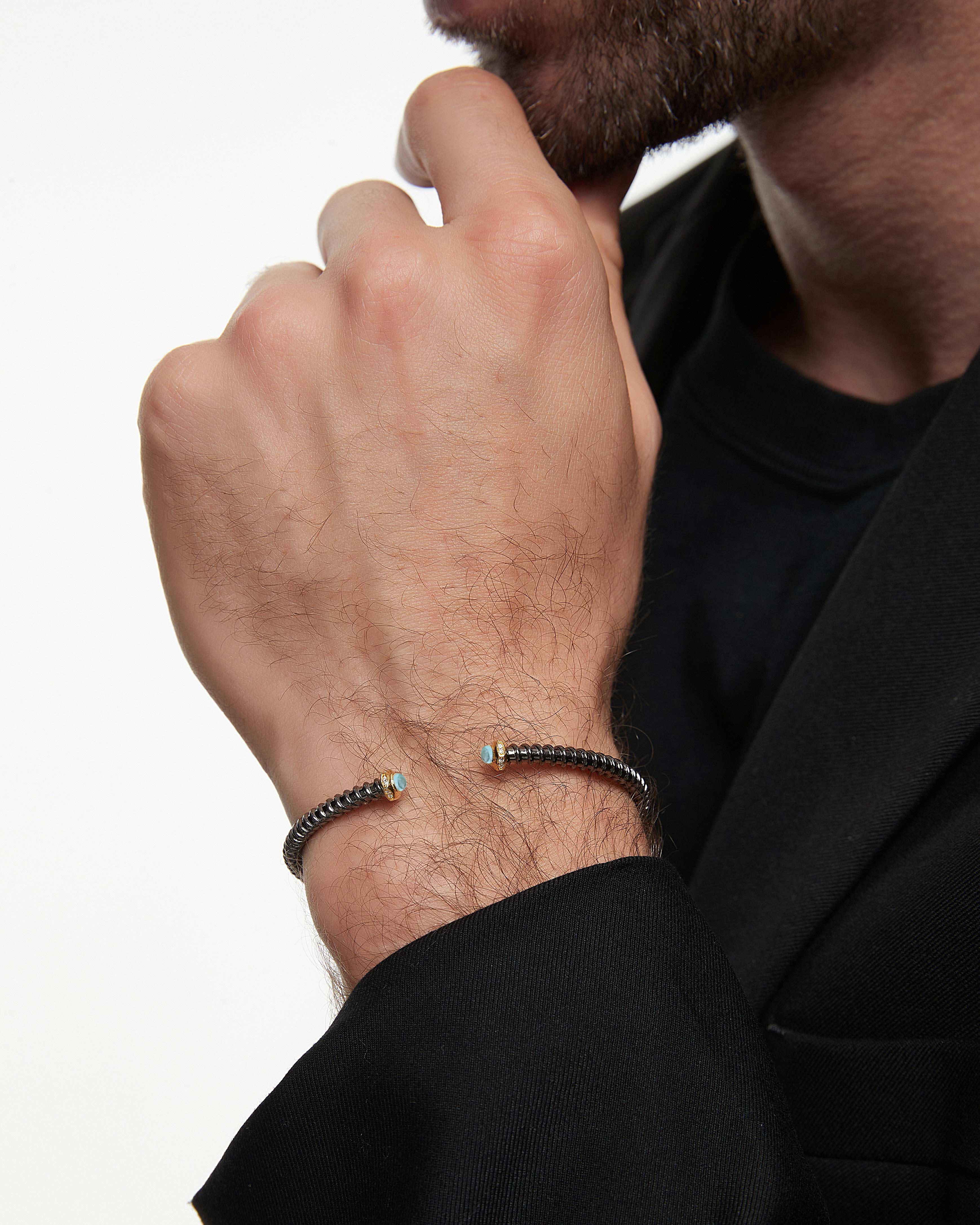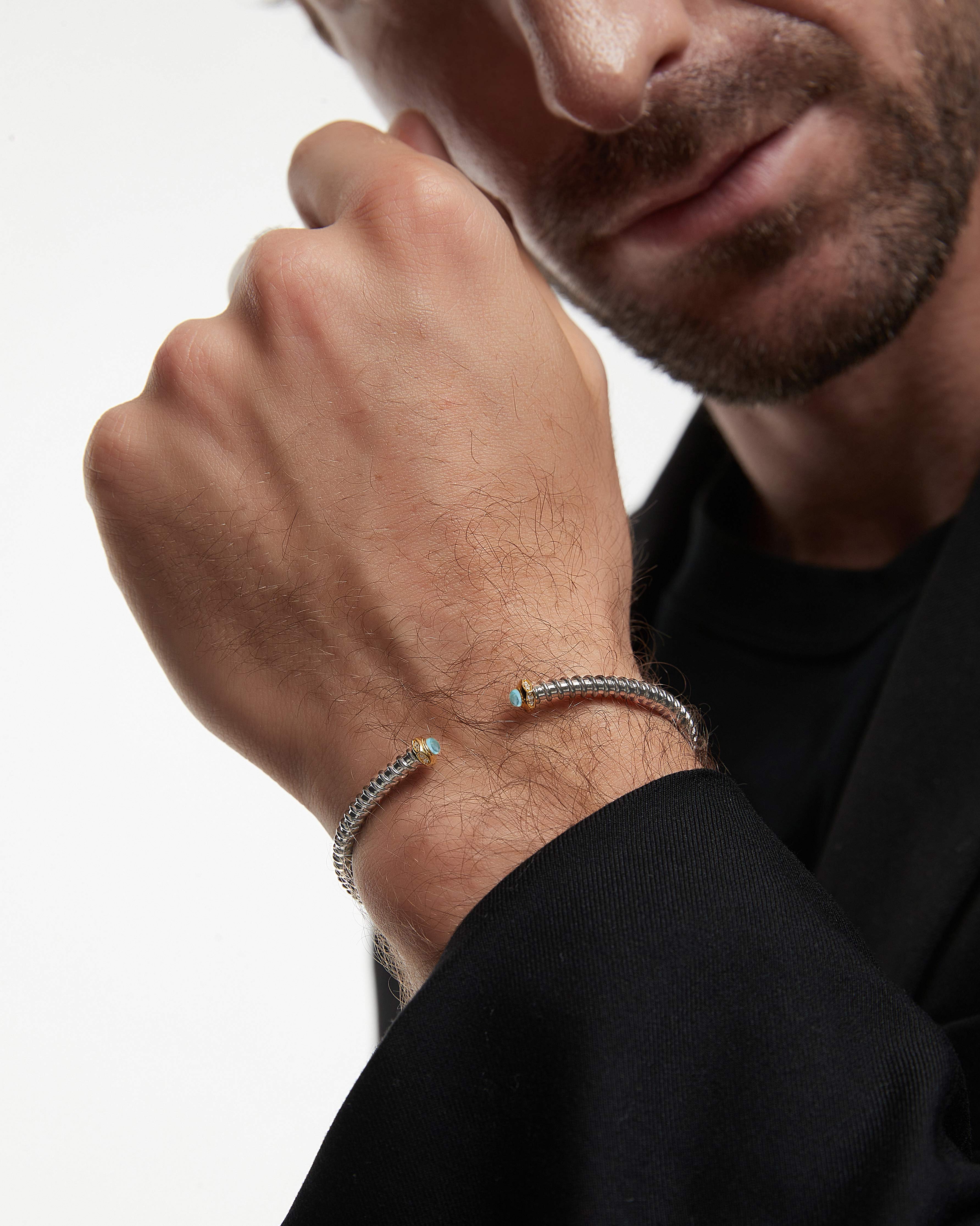 where bold engineering meets effortless cool. Featuring striking cabochon topaz and dazzling moissanites, this unisex design elevates any look – effortlessly chic for her, sharp and distinctive for him. Your new secret weapon for instant upgrade.